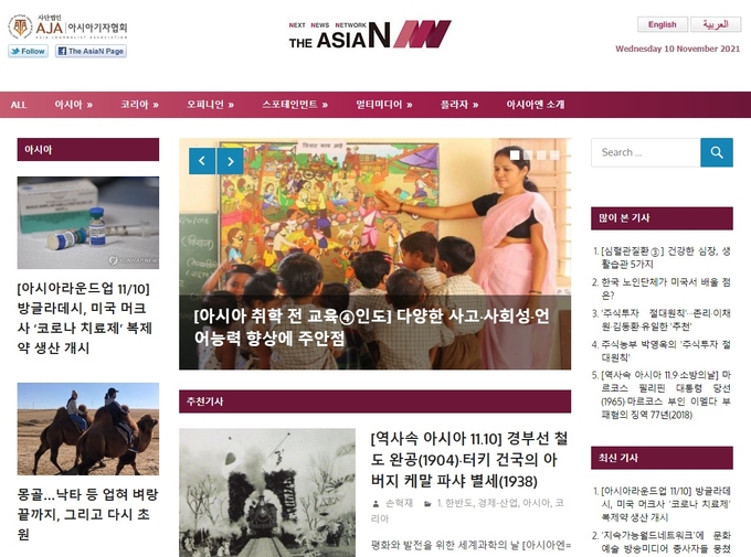 ‘아시아적 가치 공유’를 모토로 2011년 11월11일 오전 11시11분 11초에 첫 기사를 낸 <아시아엔>이 창간 10년을 맞았다. 창간 당시 한국어판과 영어판으로 시작한 아시아엔은 아랍어판을 추가하고, 자매지 ‘매거진N’을 발행하는 등 지난 10년간 아시아 각국 기자들과 소통하고 연대해 왔다.
