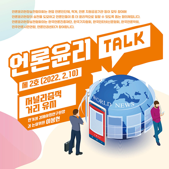 대통령 선거 열기가 뜨겁습니다. 국민의 바른 선택을 돕기 위해 뛰는 언론인 여러분도 수고가 많으리라 생각합니다. 뉴스 하나에 따라 판세가 달라질 수 있는 상황이다 보니, 보도를 둘러싼 논란도 적잖이 벌어집니다. 그 가운데 지난 1월 중순에 나온 ‘김건희 녹취록’ 보도는 언론윤리 측면에서 여러 생각할 거리를 던졌습니다. 이미 여러 매체에서 이를 다루기도 해서 이 글에서는 한 가지 쟁점만 같이 생각해 보고자 합니다. 바로 “기자가 취재원 또는 취재대상과 어느 정도의 거리를 유지해야 하는가” 입니다.