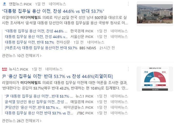 문제는 미디어헤럴드란 매체명이 여론조사 의뢰자로 모든 기사에 함께 거론되고 있다는 점이다. 이에 ㈜헤럴드는 24일 오후 알림을 통해 “독자분들께서 미디어헤럴드가 ㈜헤럴드에 소속된 매체인 것으로 오인하고 이를 확인하는 문의가 잇따르고 있다”면서 “㈜헤럴드가 발행하는 헤럴드경제·코리아헤럴드는 미디어헤럴드와 아무런 관련이 없는 별개 매체임을 알려드린다”고 밝혔다.
