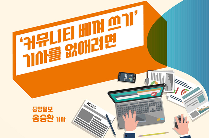 중앙일보뿐만 아니라 다른 언론사도 자신들이 생각하는 좋은 기사가 무엇인지 설명할 수 있는 지표를 만들기를 제안해봅니다. 각 언론사가 지향하는 저널리즘의 구체적인 실천 방법을 시민들에게 공개하고 그 기준에 따라 각 기사의 품질을 평가하는 겁니다. 예를 들어 어떤 특종 기사는 파급력은 대단하지만 대부분의 취재원이 익명으로 등장해서 투명성은 최하 수준일 수 있습니다. 주관적인 칼럼의 영역도 제시한 근거의 객관성을 통해 평가가 가능할 겁니다. 모든 항목에서 좋은 점수를 받는 기사는 드물겠지만 커뮤니티 베껴 쓰기를 한 기사는 모든 항목에서 나쁜 점수를 받을 게 분명합니다. 이런 평가가 기자의 업무 성과에 결정적인 영향을 준다면 온라인속보팀 역시 신속성, 정확성, 파급력 등에서 고루 좋은 점수를 얻을 수 있는 기사를 발굴하는 방향으로 스스로 역할을 바꿀 겁니다.