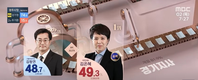 막판 대역전극을 예상하지 못하고 김은혜 후보의 당선을 예측한 언론사도 있다. MBC는 이날 새벽 2시30분쯤 김은혜 후보의 당선이 유력하다고 밝혔다. 경인일보도 이날 신문 1면 머리기사 제목을 <경기도지사 김은혜 ‘유력’…인천시장 유정복 ‘확실’>로 냈다.