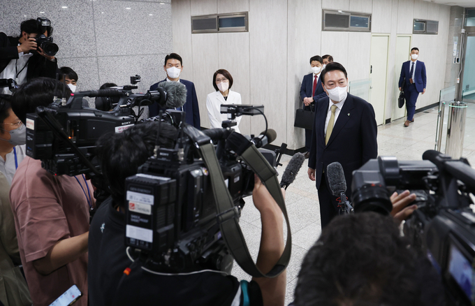 윤석열 대통령이 8일 정부 요직에 측근 검사들을 대거 등용하는 ‘검찰 편중 인사’ 지적에 “과거에 민변(민주사회를위한변호사모임) 출신들이 도배를 하지 않았나”라고 했다. 윤 대통령은 이날 서울 용산 대통령실 출근길에 기자들과 만나 ‘대통령의 인재풀이 너무 좁은 것 아니냐는 비판이 나온다’는 질문에 이같이 답했다.