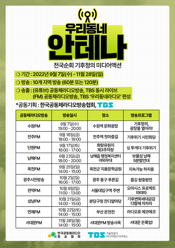 한국공동체라디오방송협회(공방협)와 TBS가 공동 기획한 기후위기 대응 프로그램이 방송된다.