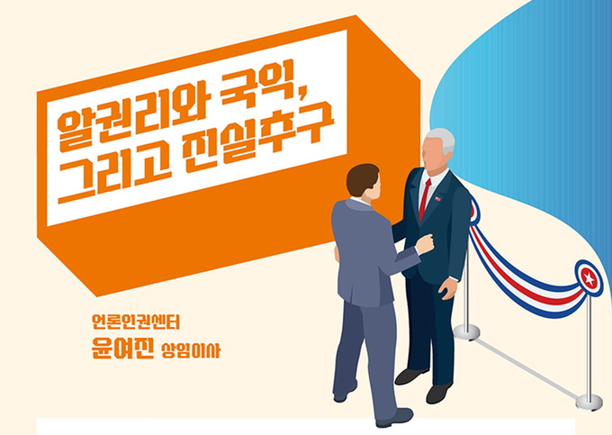 윤석열 대통령 발언 보도를 접한 국민들은 복잡하고 답답한 심정으로 대통령실의 해명을 기대했을 것입니다. 그러나 14시간이 지난 후 대통령실의 공식브리핑은 언론보도가 ‘국익’을 해쳤다는 점을 문제 삼았고 보도의 의도와 진위를 가리겠다고 나섰습니다. 그 후 여당은 대통령실과 한 목소리로 MBC를 규탄하고 항의방문까지 하기에 이르렀습니다. 나아가 대통령에 대한 명예훼손을 주장하며 MBC 사장과 보도국장, 디지털뉴스국장, 정치부 기자를 대검찰청에 고발했습니다.