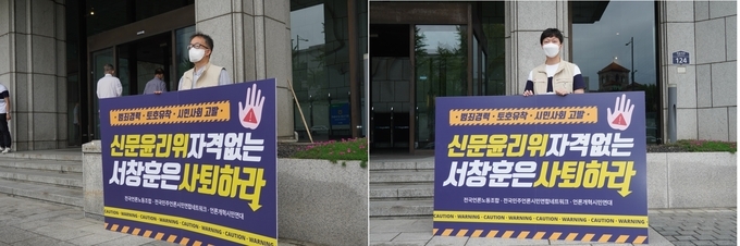 언론시민단체들은 언론자율규제기구인 신문윤리위 이사장으로 서씨가 활동하는 동안 윤리위의 위상과 윤리적 정당성이 크게 훼손될 것이라 우려하며 지난 두 달 간 기자회견과 1인 시위, 신문윤리위 이사진의 결단을 촉구하는 공문 발송 등 퇴진 투쟁을 벌여왔다. 그럼에도 서씨와 신문윤리위는 묵묵부답이었고 이에 언론시민단체들은 지난 11일 긴급회의를 열어 퇴진운동의 방향과 수의를 논의한 끝에 이번 결론을 내렸다. 언론노조는 “서창훈 퇴진 언론시민단체, ‘신문윤리위에 들어간 나랏돈, 낱낱이 밝혀야”란 제목의 보도자료에서 “사태의 파장이 정부와 언론진흥재단에 미치고 있다”고 적었다.