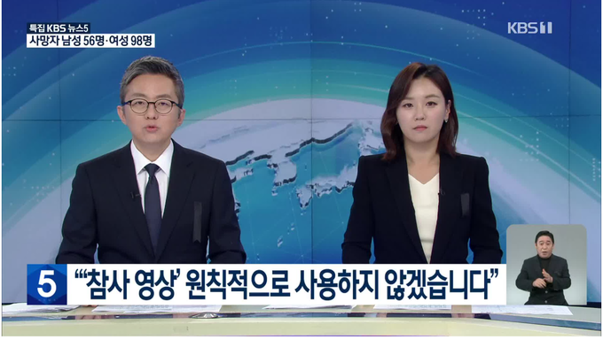 SBS도 이날 메인뉴스 ‘뉴스8’ 첫머리 앵커 멘트를 통해 “뉴스에서 자극적인 현장 영상은 원칙적으로 쓰지 않고, 사고 상황을 설명하는 경우에만 최대한 흐릿하게 절제해서 사용하겠다는 점 말씀드린다”고 밝혔다.