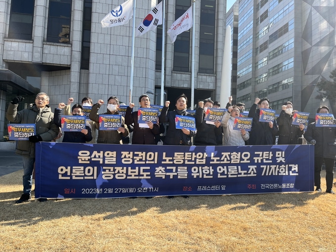 이에 전국언론노동조합은 27일 서울 중구 한국프레스센터 앞에서 긴급 기자회견을 열어 “족벌 보수 언론들과 자본 이익을 대변하는데 급급한 경제지들을 중심으로 이러한 윤석열 정부 발 왜곡 과장 허위를 더욱 증폭시키는 반저널리즘 행위가 사태를 더욱 악화시키고 있다”고 비판하며 “윤석열 정권의 확성기로 전락한 보수 족벌언론의 노조 혐오 보도에 분노와 참담함을 느낀다”고 밝혔다.