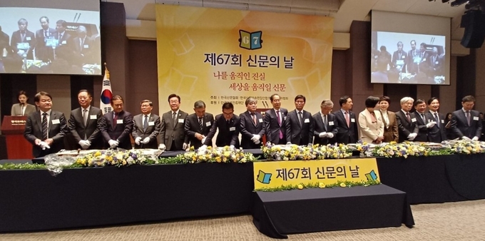 이날 기념대회에 앞서 신문협회 회원사 발행인, 임직원, 신문협회상·한국신문상 수상자 및 가족 등 150여명이 참석한 가운데 프레스센터 국제회의장에서 한국신문상·신문협회상 시상식이 열렸다.