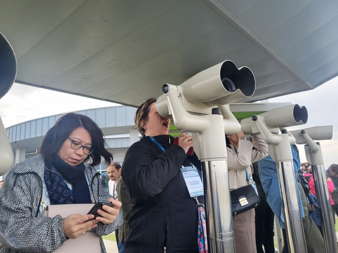 한국기자협회가 주최한 ‘2023 세계기자대회’ 참가자들이 26일 DMZ를 찾았다. 50개국 70여명의 언론인들은 이날 오전 과거 미군기지로 사용된 캠프그리브스, 북한 전경을 바라볼 수 있는 도라전망대 등을 방문해 분단의 아픔, 한반도 평화에 대한 생각을 나눴다.