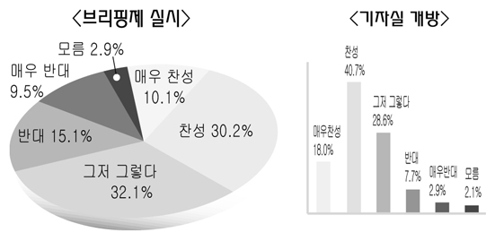 청와대 및 정부부처 기자실 개방과 브리핑제 도입에 대해 기자들은 대체로 찬성했다.