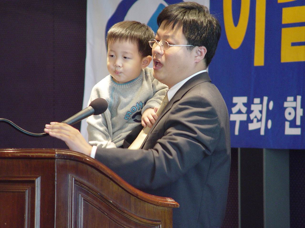 아이 안고 수상소감 발표