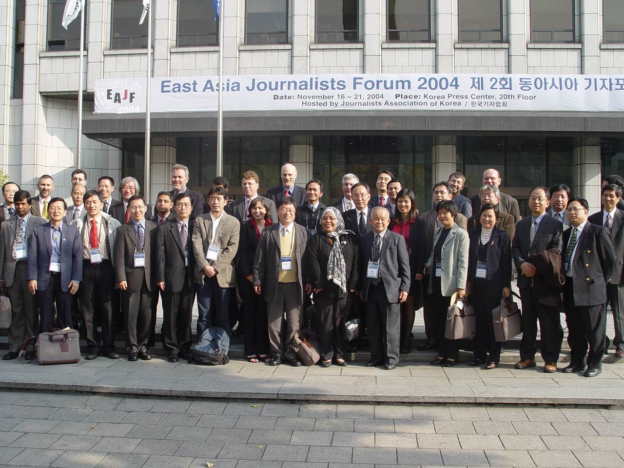 도라산 시찰을 위한 버스에 탑승하기에 앞서 기념촬영을 하고 있는 참가자들.