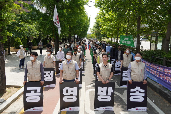 야당인 더불어민주당을 향해서도 “지난 5년간 공영방송의 정치적 독립을 위한 법안을 마련하겠다는 약속을 지키지 않았다”고 꼬집었다. MBC본부는 “박홍근 원내대표는 이번 국회에서 지난 4월 당론으로 채택한 공영방송 지배구조 개선 법안을 최우선으로 추진하겠다고 공언했다. 더불어민주당은 이 약속을 반드시 지키는 것만이 지난 과오를 바로잡을 수 있는 유일한 길이란 점을 명심해야 한다”면서 “더 이상 물러설 곳도, 좌고우면할 여유도 없다”고 주장했다.