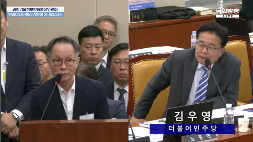 앞서 23일 과방위 국감에서는 한 센터장이 KBS의 내부 사정을 용산에 전달하는 ‘브로커’ 역할을 했다는 의혹이 나왔다. 김 의원은 이날 “지금 KBS 센터장님, 한경천이라고 있다. 얘가 이제 일을, 또 중간 심부름을 제가 시켜서 많이 했고”라는 조 전 부회장의 육성을 공개했다.