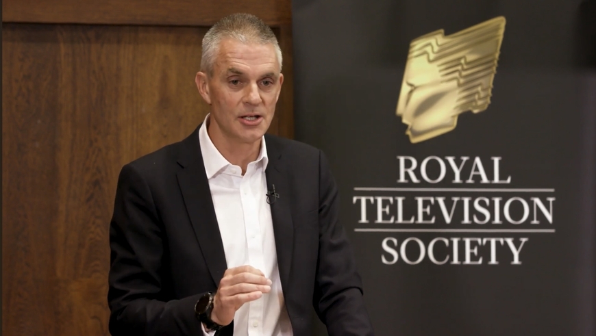 팀 데이비 BBC 사장이 2022년 12월 왕립TV협회 강연에서 '인터넷 온리'(internet-only) BBC에 대해 설명하고 있다. /왕립TV협회 유튜브