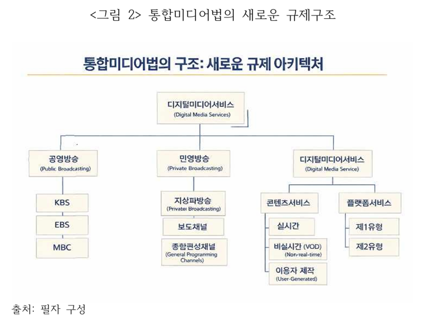 이 같은 지적은 현재 정부여당이 추진하는 ‘통합미디어법’ 논의와 불가피하게 맞닿는다. 2000년 제정된 통합방송법은 시장 상황 변화를 반영하지 못해 OTT 등 뉴미디어를 포섭하지 못해 왔는데, 현재 국회에선 이를 아울러 ‘시청각미디어’란 개념으로 지칭한 통합미디어법의 연구반을 구성하고 규율 범위, 분류체계, 제도 개편 등을 담은 초안을 1월26일 발표한 상태다. 다만 한국 현실에 맞는 논의를 위해선 단순히 ‘결과’가 아니라 철학과 방향에 대한 설정이 무엇보다 중요하다는 지적이 나오고 있다.
