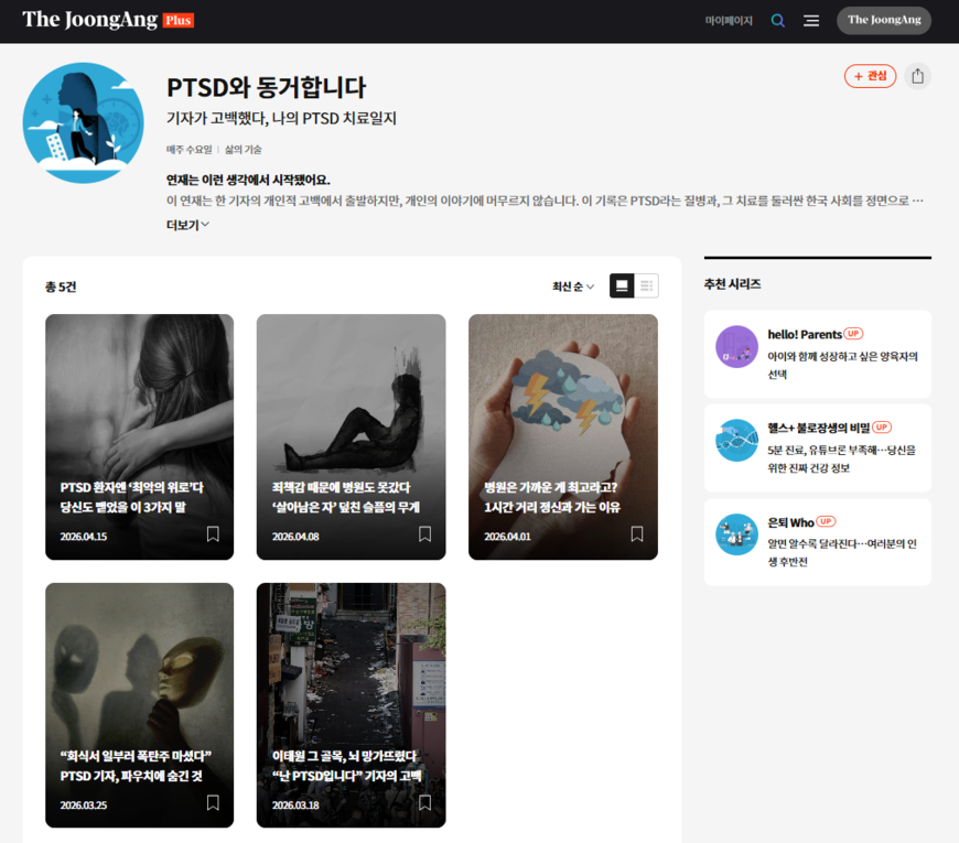 김남영 중앙일보 기자는 외상 후 스트레스 장애(PTSD) 환자다. 2022년 10월 이태원 참사 현장을 취재하며 병을 얻게 된 그는 최근 더중앙플러스를 통해 ‘PTSD와 동거합니다’란 연재를 시작하며 이 같은 사실을 밝혔다. 그동안 정신과를 다닌다는 사실을 꼭꼭 숨기고 살았는데, 어느 순간 치료에 큰 만족감을 느끼고 다른 사람에게 권하고 싶다는 생각이 들었다고 했다.