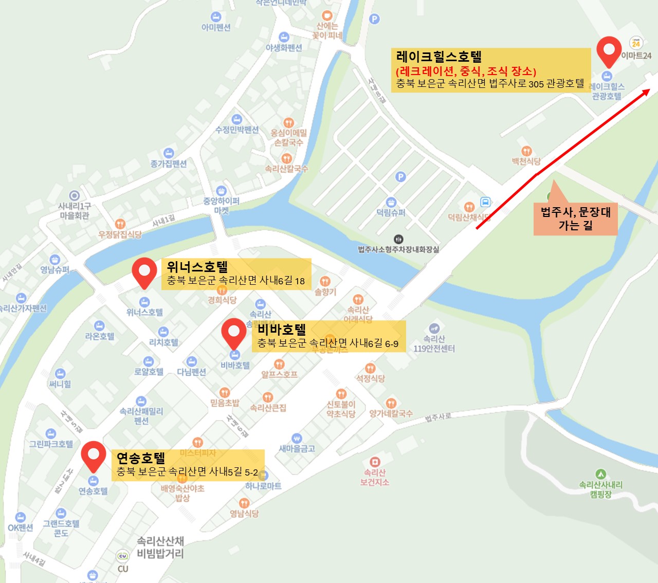 △ 숙소1 : 레이크힐스호텔(레크레이션, 2일 중식, 3일 조식 / 속리산면 법주사로 305)