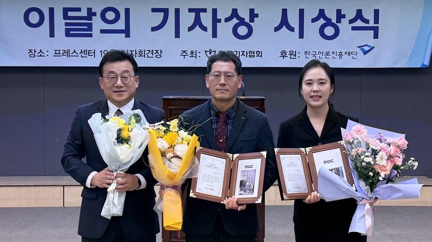 아까 앞에 분들 수상 소감 듣는데 누가 도움을 줬다 이런 말씀 많이 하시더라고요. 그래서 저도 좀 말씀을 드리자면 솔직히 이 보도는 서울 본사와 같이 공유했던 보도입니다. 강원영동MBC라는 곳에 데스크가 따로 있는데, 이 보도는 서울에 있는 저희 지역 사회를 담당하는 전국팀이라는 곳이 있어요. 거기 데스크와 처음부터 끝까지 공유했던 겁니다. 그래서 아까 회장님께서 지역사들이 좀 수준이 올라가고 있다는 말씀을 하셨는데 서울의 시각으로 처음부터 이 보도가 시작이 됐고요. 그래서 보도의 내용 자체가 좀 전국적으로 이슈가 되고 그 다음에 대통령까지 관심을 갖게 된 보도가 됐죠. 이 자리를 빌어 이제 그 분도 서울 본사에서는 김 부장이시거든요. 그래서 김 부장에게 상당히 감사하다는 말씀을 드리고 싶고요.