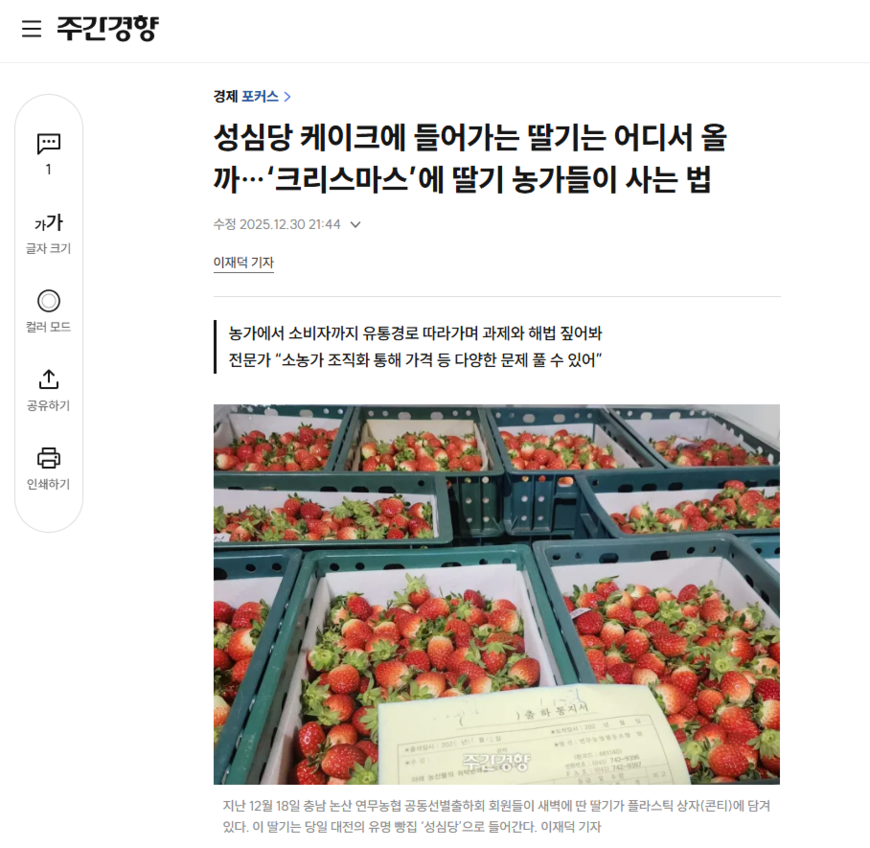 농산물값이 오르면 소비자는 “너무 비싸다”고 한숨을 쉰다. 그런데 정작 농민들은 “원가도 안 나온다”고 아우성이다. 대체 이런 문제는 왜 생기는 걸까. 산지 과일은 어떤 경로를 거쳐 소비자에게 향하는 걸까. 이 의문을 풀기 위해 시사IN, 주간경향, 한겨레21 세 주간지 기자들이 뭉쳤다. 이들은 지난해 말부터 올해 초까지 겨울 과일·과채의 유통경로를 따라가며 과제와 해법을 짚는 기사를 연이어 내보냈다. 이오성 시사IN 기자는 경북 안동 사과를, 이재덕 주간경향 기자는 경남 산청 딸기를, 김양진 한겨레21 기자는 제주 감귤을 맡아 각각 농산물 유통구조의 문제를 추적했다.
