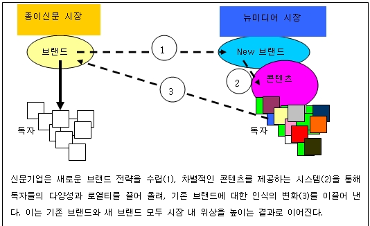 CBS의 노컷뉴스, 머니투데이의 스타뉴스, 오마이뉴스와 프레시안이 현재까지 선전할 수 있었던 것도 다른 관점의 창조에 의해서 콘텐츠를 생산, 유통시킬 수 있었기 때문이다. 그러나 대부분의 신문기업들은 아직도 낡은 환경에 안주하고 있다. 일반적인 신문기자들은 여전히 신문기사로 모든 업무를 마치고 있다.