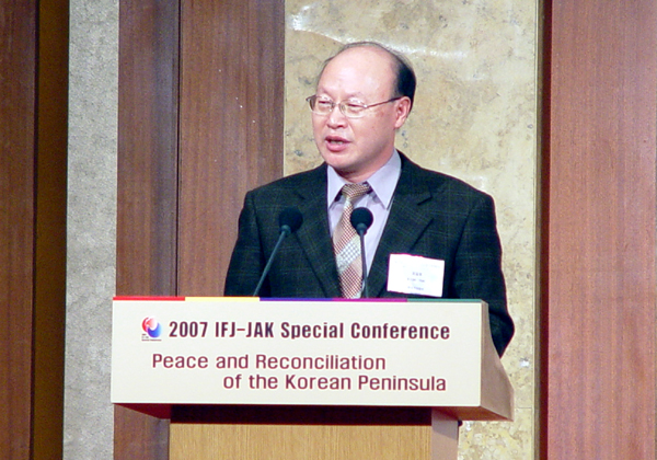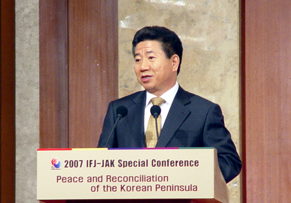우연의 일치인지 모르겠습니다만 중국 베이징에서 2.13 합의가 있은 지 딱 한 달만에 우리가 이 자리에 모였습니다. 지난 2005년 12월 서울 특별총회를 유치했을 때만 해도 한반도는 전쟁의 먹구름으로 덮여 있었습니다. 그러나 서울 특별총회가 열리는 오늘은 전쟁 아닌 평화를, 증오와 적개심 대신 화합을 심을 수 있다는 희망을 갖게 됩니다. 여러분들이, 바로 우리 기자들이 한반도 평화의 전령사가 아닌가 생각해 봅니다.