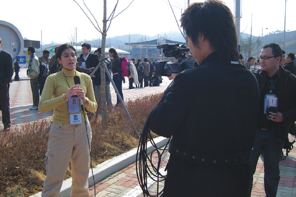 16일 개성공단을 방문했을 때, 전 세계 기자들을 상대로 통역을 맡은 개성공단관리위원회의 최향 씨. 그녀는 유창한 영어와 미모로 기자들의 인기를 독차지했다.
