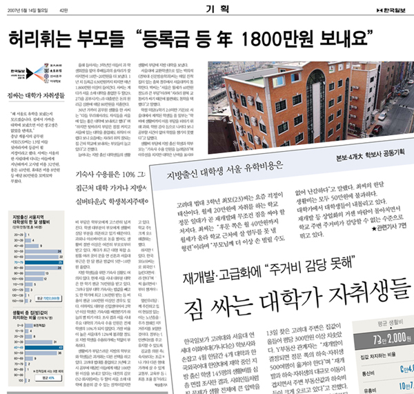한국은 고려대 서울대 연세대 이화여대 등 4개 대학 학보사와 공동으로 대학 현장을 심층 취재, 한국일보 지면과 각 대학 학보사에 공동 게재키로 하고 지난 14일부터 비정기적으로 보도하고 있다.