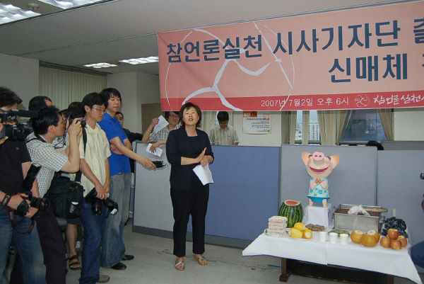 이날 선포식에는 민주노동당 심상정 의원, 한나라당 고진화 의원을 비롯해 시사저널 편집국장을 지낸 김훈 작가, 성신여대 손석희 교수, 조용한 변호사, 민주화실천가족운동협의회 등 신매체 창간을 지지하는 인사 50여명이 참석했다.