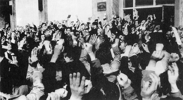 ▲ 기자협회는 1975년 3월13일 전국시도지부 확대회의를 개최, 정부의 언론탄압에 대한 대책을 수립하고 국민·정부·언론사주에 보내는 메시지를 채택했다. 사진은 회의후 신문회관 앞에서 ‘자유언론 만세’를 외치는 회원들. |