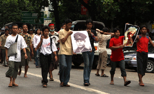 ▲버마 민주화 시위대의 시위모습 (=©한겨레) |