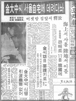 ▲ 김대중(당시 전 국회의원) 납치사건을 보도한 1973년8월10일자 동아일보 1면 |
