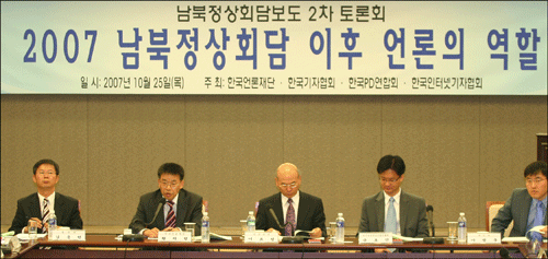 25일 서울 태평로 프레스센터에서 ‘2007 남북정상회담 이후 언론의 역할’이란 주제로 열린 남북정상회담보도 2차 토론회에서 한국언론재단 황치성 부장은 주제발표를 통해 “정상회담 기간 주 제목으로 나타난 보도시각을 분석한 결과 동아일보가 가장 부정적으로 나타났다”고 밝혔다.
