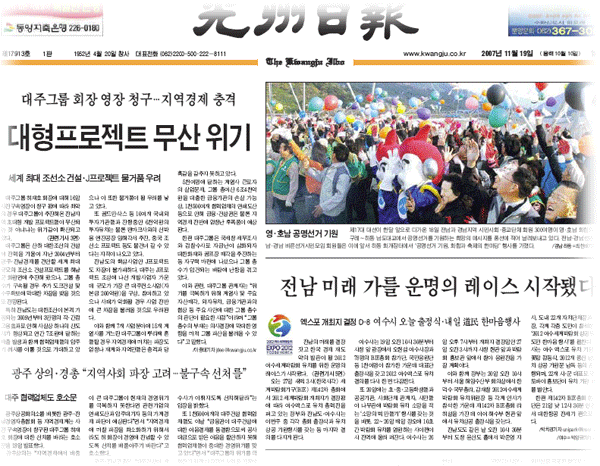 광주일보는 1면 머리기사 <대주그룹 회장 영장 청구…지역경제 충격 대형프로젝트 무산 위기>에서 “허재호 회장에 대해 16일 사전구속영장이 청구됨에 따라 최악의 경우 대주그룹이 추진해온 전남지역 초대형 개발 프로젝트들이 무산되는 것 아니냐는 위기감이 확산되고 있다”고 보도했다.