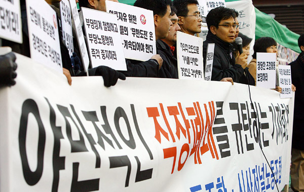 (8)언론노조 회계부정 충격 언론노동운동의 최전선에 서왔던 전국언론노동조합이 회계부정 파문에 휩싸였다. 총무 담당 간부가 3억원의 공금을 횡령했다는 사실이 전해졌다. 그동안 감시 시스템이 전혀 작동하지 못했다는 점도 놀라웠다. 이준안 위원장의 사실상 탄핵으로 이어진 이번 사태는 언론노조 안의 치열한 논쟁과 갈등을 불러일으키기도 했다. 급격한 변화의 파란에 놓인 언론계. 언론노조의 부재가 얼마나 큰 손실인지, 언론노동운동의 탈바꿈이 절실함을 깨닫게 하는 2007년이었다.