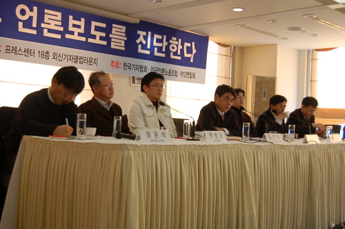 26일 프레스센터 외신기자클럽에서 한국기자협회․전국언론노동조합․PD연합회 주최로 열린 토론회 ‘대선 전후 언론보도를 진단한다’에 참석한 발제자들은 신문․방송 모두 이명박 당선자 위주의 보도로 일관했다고 비판했다.