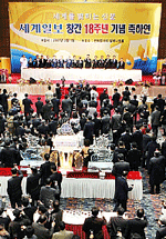 ▲ 지난 해 2월 메리어트호텔 밀레니엄홀에서 열린 세계일보 창간 18주년 축하연에서 주요 참석자들이 건배하고 있다. (사진=뉴시스) |
