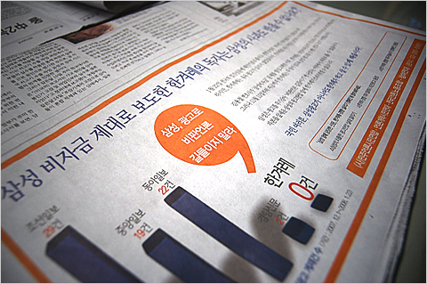 (사)민주언론시민연합 등은 이날 광고에서 “삼성 비자금 제대로 보도한 한겨레의 독자는 삼성의 사과도 받을 수 없나요?” “국민 여러분, 삼성광고가 아니어도 한겨레가 먹고살 수 있도록 해줍시다”라고 호소했다.