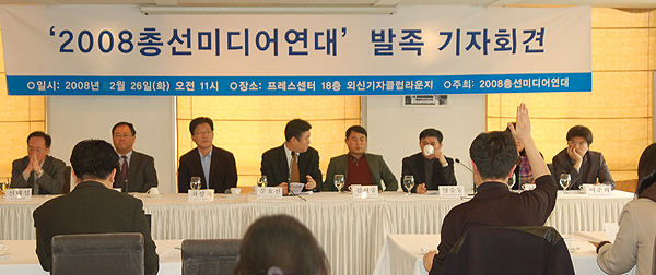 ‘2008총선미디어연대’(공동대표 김서중·권미혁)가 26일 오전 11시 서울 중구 태평로 프레스센터 18층 외신기자클럽에서 발족 기자회견을 갖고 공식 활동을 시작했다.