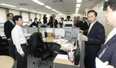 ▲ 지난 5일 이명박 대통령이 청와대 여민관(비서동)을 둘러보고 있다. (사진=청와대 제공) |