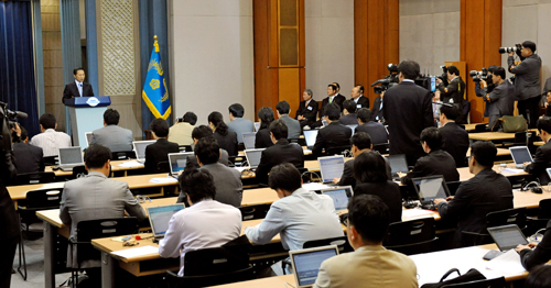▲ 13일 오전 기자들이 청와대 춘추관에서 대통령 기자회견을 취재하고 있다. ⓒ뉴시스 |