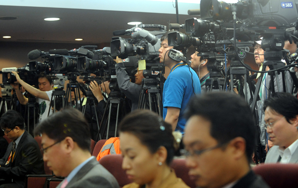 | ▲ 이건희 회장 기다리는 많은 취재진 - 22일 오전 서울 태평로 삼성본관에서 이건희 회장의 '삼성 쇄신안' 취재를 위해 많은 취재진들이 이건희 회장의 발표를 기다리고 있다.ⓒ뉴시스 | ||