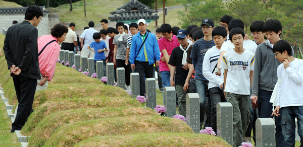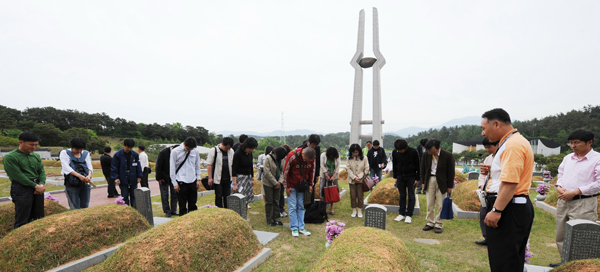 5.18 광주민주화운동 28주년을 맞아 광주 북구 운정동 국립 5·18 민주묘지에는 전국 각지에서 참배객들의 발길이 이어지고 있다. (사진 제공 광주 매일신문 김영근 기자)