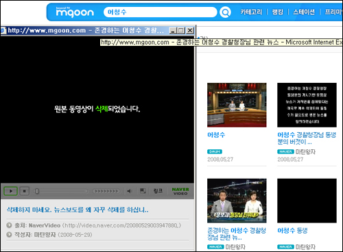 | ▲ 어청수 경찰총장 동생의 성매매업소 소유 관련 부산 MBC 보도 영상은 국내 UCC 동영상 사이트에서도 삭제되고있다. 반복해서 삭제당하자 동영상을 올린 네티즌이 삭제하지 말라고 항의하는 글을 쓴 것이 눈에 띈다. | ||