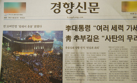 미 쇠고기 파문과 촛불집회를 주요 의제로 다루고 있는 경향에 대한 관심들이다. 온라인과 오프라인을 막론하고 경향에 대한 주목도가 부쩍 높아졌다. 이대근 정치·국제에디터는 “미 쇠고기 파문과 촛불집회를 신문의 정도, 원칙에 따라 보도한 데 대해 독자들이 반응을 한 것으로 보인다”면서 “국가와 자본 등 기득권 집단이 권력을 남용하거나 시민과 달리가면 견제한다는 신문 본래의 기능에 충실할 뿐”이라고 말했다.