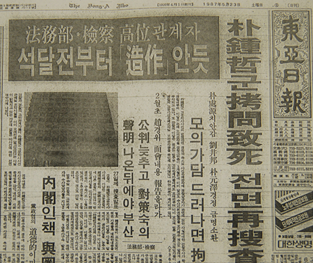 ▲ 1987년 5월 23일자 동아일보 1면 |