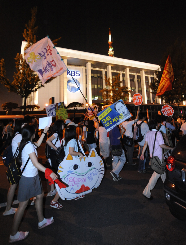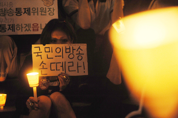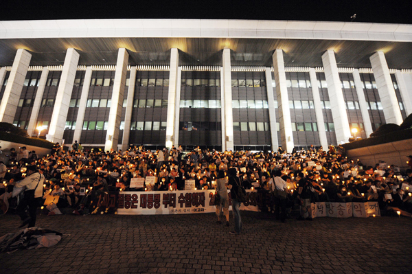 | ▲ 13일 저녁 서울 KBS 본관 앞에서 '미국산 쇠고기 수입 반대 및 수입조건 재협상 촉구 촛불문화제'에 참가한 시민들이 촛불을 밝히고 있다. ⓒ뉴시스 | ||