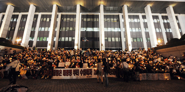 시민들은 11일부터 KBS 앞에서 ‘표적감사 반대’ ‘방송장악 저지’ ‘최시중 방통위원장 사퇴’ 등을 요구하며 계속 밤샘 촛불집회를 열고 있다.
