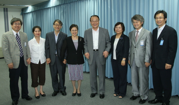방송통신위원회는 11일 보편적시청권보장위원회 위원 7명을 위촉했다. 사진 왼쪽으로부터 박형상 변호사, 하윤금 한국방송영상산업진흥원 책임연구원, 송해룡 성균관대 신문방송학과 교수, 이경자위원, 최시중위원장, 강정화 한국소비자연맹 사무총장, 정대길 국민체육진흥공단 체육진흥실장, 강형철 숙명여대 언론정보학부 교수 |