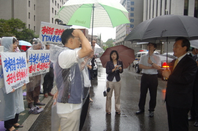 우산을 쓰고 나타난 구본홍 사장은 “여러분, 비도 오는데…”라며 말문을 열었으나 노조원들은 “돌아가라”며 구호를 외쳤다.